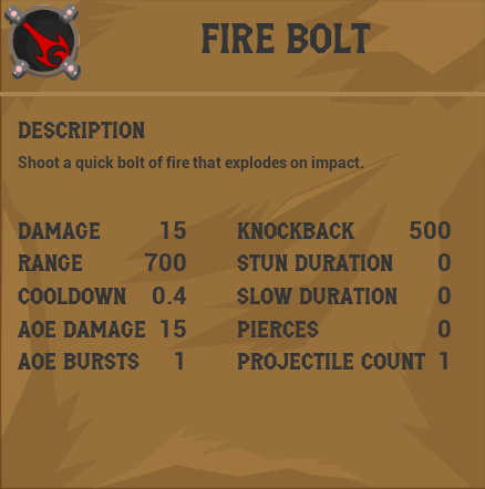 Finally, we have the Projectile Time structure. This structure holds any information that impacts the timing of a spell. The spells cast time, how long the cooldown is, the duration of the AOE. Any time related factors are stored here.
